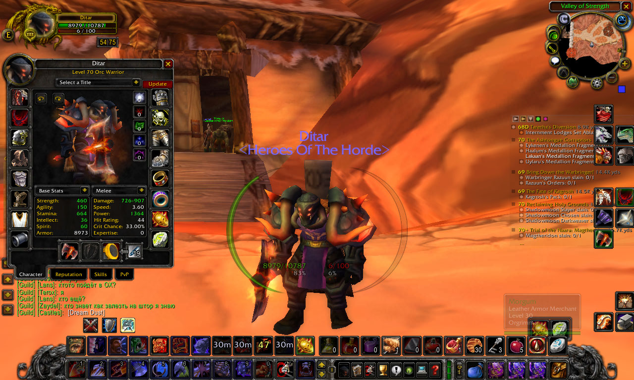| • Ник персонажа: Ditar • Раса/Класс/Уровень персонажа: Орк-Вар- 70 лвла • Ваше имя: Стас • Место жительства (страна, город): Бобруйск, Белоруссия • Ваш возраст: 18 • Ваш род занятий и график: Студент, свободен после 16:00 • Являетесь ли вы уникальным владельцем персонажа с момента его создания (то есть вы качали его с 1 уровня): да • Опыт игры на сервере WNet: 2 года • Опыт игры на других серверах: нету • Как давно играете данным персонажем: соответственно 2 года • Предпочтительный билд: Армс или фьюри( зависит от настроения) • Есть ли опыт игры в других билдах: нет • Перечислите всех персонажей, которыми вы играли / играете на сервере WNet (ник, фракция, класс, уровень): нету( специализируюсь только на варах) • Количество времени, которое вы уделяете игре: минимум 4 часа в день( могу и больше если потребуется) • Гильдии, в которых вы состоите/состояли ранее и причины ухода (обязательно подробно): Knights of Aragoses ( ушёл т.к. слабый онлайн и почти нереально собрать рейд куда-нибудь) • Почему вы хотите к нам вступить? Чего вы ожидаете от гильдии?: совместных походов, рейдов, взаимопомощи • Есть ли у вас в нашей гильдии друзья, которые смогут за вас поручиться: нет • Ваши профессии и скилл (только основные): Мининг(369) БС(300) • Готовы ли вы менять билд под нужды рейда и по просьбе РЛ? Конечно да • Конфигурация вашего компьютера (ответы "хорошая" или "пойдет" нас не устраивают): 4 ядра Ahtlon 6000 4 ГБ оперативы( только что обновил) GForce 9800GTS • Бывают ли у вас дисконекты, как часто. Средний пинг в игре. Скорость канала интернета: дисконнектов почти не бывает, средний пинг 51-60 • Для персонажей уровней 65 и выше скриншот главного окна персонажа (клавиша "С"): • Дополнительные сведения, которые вы хотите нам сообщить: да вроде всё сказал)