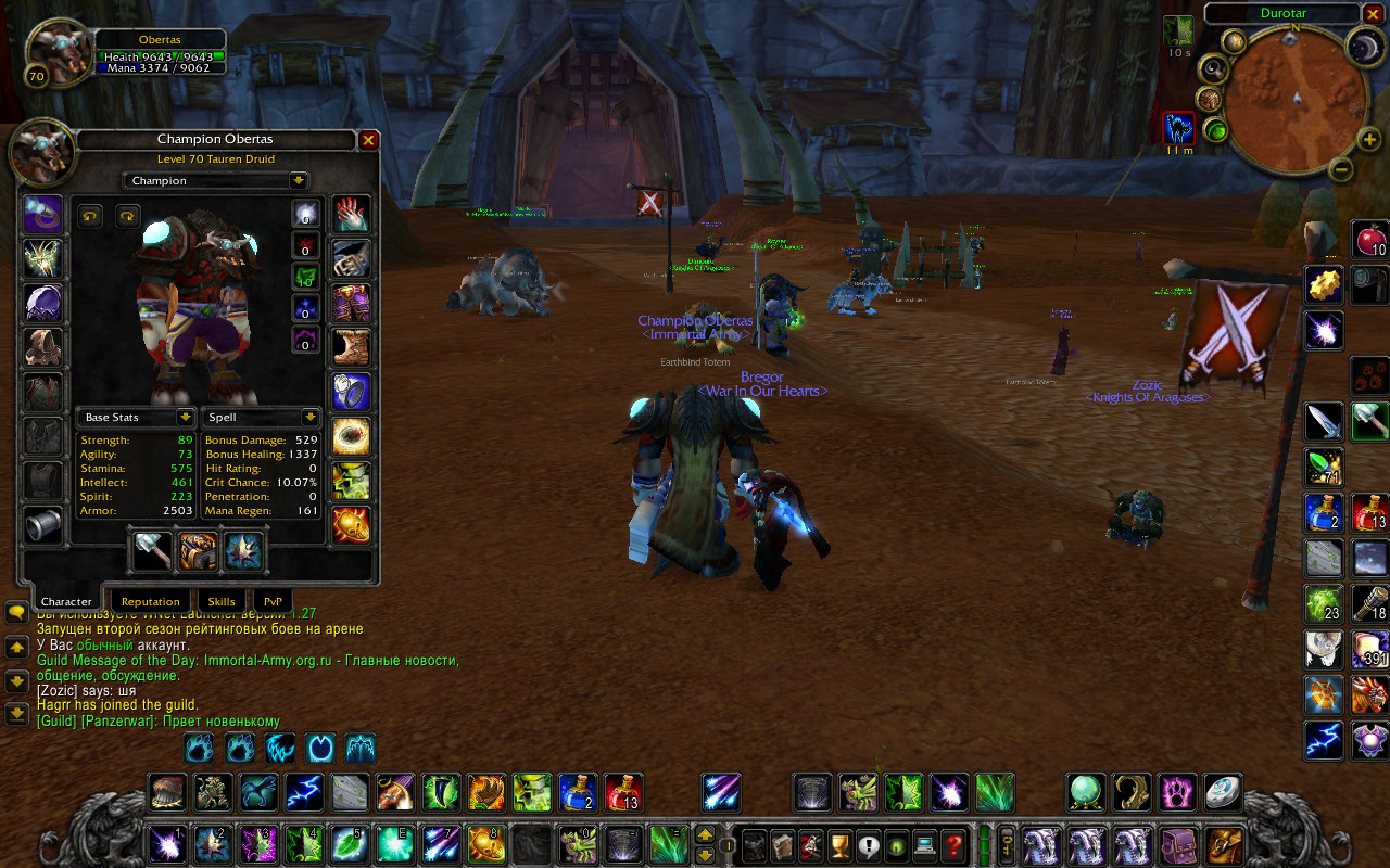 | • Ник персонажа: Obertas • Раса/Класс/Уровень персонажа: 70 Tauren Druid • Ваше имя: Вова • Место жительства (страна, город): Украина, г. Первомайск • Ваш возраст: 18 • Ваш род занятий и график: Студент универа. Свободен почти всю остальную часть дня • Являетесь ли вы уникальным владельцем персонажа с момента его создания (то есть вы качали его с 1 уровня): Да. • Опыт игры на сервере WNet: скоро 3 года уже • Опыт игры на других серверах: на 2.4.3 фане играл, но недолго. • Как давно играете данным персонажем: Именно этим - где-то полтора года • Предпочтительный билд: 11-11-39 • Есть ли опыт игры в других билдах: Да, пве-рестор, пве-баланс • Перечислите всех персонажей, которыми вы играли / играете на сервере WNet (ник, фракция, класс, уровень): Сначала рогом играл, Balabasko 70 lvl Orc. А1 собрал, немного шмота выбил, создал друида на том же аккаунте. Вот в настоящее время им и играю. • Количество времени, которое вы уделяете игре: Как получается. В будние дни часа 3-5 или меньше, бывает и больше. • Гильдии, в которых вы состоите/состояли ранее и причины ухода (обязательно подробно): Пишу про друида: был в Darkness, Immortal Army. В первой ГМ был знакомый, но потом что-то гильдия стала с 0 онлайном. В Иммортал в принципе все бы хорошо, но в последнее время ГМ Feoretik ушел из онлайна и там начался почти хаос. .• Почему вы хотите к нам вступить? Чего вы ожидаете от гильдии?: Наслышан о вашей гильдии, особенно в плане пве-рейдов (на тот же МЛ). Знаю ГМ, серьезный человек. Хочу вступить в адекватный отзывчивый коллектив, для совместных походов куда-либо и просто провождения времени. • Есть ли у вас в нашей гильдии друзья, которые смогут за вас поручиться: В принципе не могу этого сказать. Знаю Дрифода, который скрафтил мне пару хороших вещей, Bronda/Biogra (когда-то он ушел из Авантазии и мне тоже предлагал (я тогда в основном рогом играл)). Менсалию знаю, на бг хилял • Ваши профессии и скилл (только основные): Инженерия 355, Лезервокинг 375. • Готовы ли вы менять билд под нужды рейда и по просьбе РЛ? Да, конечно • Конфигурация вашего компьютера (ответы "хорошая" или "пойдет" нас не устраивают): AMD Athlon X2 5200+, 1Gb RAM, NVidia GeForce 9500GT 512Mb • Бывают ли у вас дисконекты, как часто. Средний пинг в игре. Скорость канала интернета: Дисконнекты очень редко. Иногда провайдер балуется. Скорость канала 8192Мбит/с, средний пинг 30. • Скриншот главного окна персонажа (клавиша "С"): Статы может и не впечатляют, но 70 я недавно пробил. И усиленно над этим работаю. • Дополнительные сведения, которые вы хотите нам сообщить: Примите, ну что вам стоит  Добавлено (19.09.2010, 22:00) --------------------------------------------- маленькая поправочка: я сделал скрин на другой копии ВоВ, там у меня Key Bindings еще не настроено. на самом деле у меня 1 2 3 4 5 6 7 8 9 F Q E