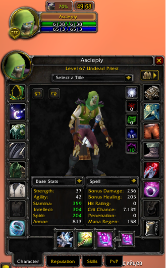 | • Ник персонажа : Asclepiy • Раса/Класс/Уровень персонажа: Андед • Ваше имя: Владимир • Место жительства (страна, город): Киев • Ваш возраст: 19 • Ваш род занятий и график: Студент (не стабильный график, с 18.00 свободен постоянно, хотя бывает и целый день свободный) • Являетесь ли вы уникальным владельцем персонажа с момента его создания (то есть вы качали его с 1 уровня): да • Опыт игры на сервере WNet: 1.5 года • Опыт игры на других серверах: нет • Как давно играете данным персонажем: 3 месяца • Предпочтительный билд: хил • Есть ли опыт игры в других билдах: да (шадов) • Перечислите всех персонажей, которыми вы играли / играете на сервере WNet (ник, фракция, класс, уровень): Ateus (49 вар таурен фул одет (лучшего 49 вара просто нет! (я очень скромный))) • Количество времени, которое вы уделяете игре: от 2 до 22 часов в день • Гильдии, в которых вы состоите/состояли ранее и причины ухода (обязательно подробно): не был в гильдиях пока что • Почему вы хотите к нам вступить? Чего вы ожидаете от гильдии?: набраться опыта в других игроков и поделиться своим. • Есть ли у вас в нашей гильдии друзья, которые смогут за вас поручиться: хз)) хм... рог тезз, он со мной бгшил на 49. он знает моего вара Атеуса. • Ваши профессии и скилл (только основные): майнинг (375), гербализм (350) • Готовы ли вы менять билд под нужды рейда и по просьбе РЛ? мне не жалко 5 голд) конечно готов! • Конфигурация вашего компьютера (ответы "хорошая" или "пойдет" нас не устраивают): 2 гб оперативы, 512 видюха, проц. интел кор 2 дуо, игра идёт без проблем • Бывают ли у вас дисконекты, как часто. Средний пинг в игре. Скорость канала интернета: бывают, но очочоч редко, 5-19 ms (пинг), днём - 10 mbps, ночью - 40+ mbps. (Speedtest не врёт) • Скриншот главного окна персонажа (клавиша "С"): • Дополнительные сведения, которые вы хотите нам сообщить: если у кого нить будут траблы с регами - обращайтесь - помогу чем смогу)