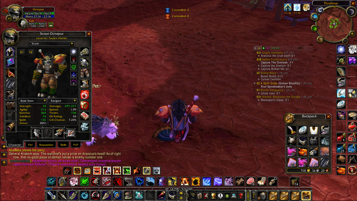 • Раса/Класс/Уровень персонажа: Таурен/Хантер/61