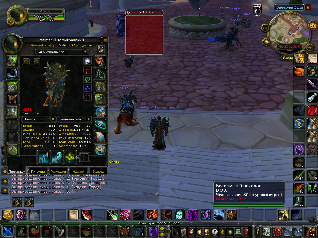• Ник персонажа (если был переименован, то и старый и новый ник): animan • Раса/Класс/Уровень персонажа: Ночной Ельф, Разбойник, 80 уровень • Ваше имя: Вася • Место жительства (страна, город): Україна, Чернівці • Ваш возраст: 17 • Ваш род занятий и график: Учоба, від 8.00 до 16.00 • Являетесь ли вы уникальным владельцем персонажа с момента его создания (то есть вы качали его с 1 уровня): + • Опыт игры на сервере wowz: не грав • Опыт игры на других серверах: wow-nsk, wow-circle • Как давно играете данным персонажем: Майже 3 роки • Предпочтительный билд: Пве і Пвп Ліквідація • Есть ли опыт игры в других билдах: Пве в бою • Перечислите всех персонажей, которыми вы играли / играете на сервере wowz (ник, фракция, класс, уровень): Kriet Альянс ДК 80 Gelda Альянс Лок 80 • Играли ли вы на сервере Wnet? Если да, то укажите ники персонажей и гильдии в которых были: не грав • Количество времени, которое вы уделяете игре: 3-7 годин • Гильдии, в которых вы состоите/состояли ранее и причины ухода (обязательно подробно): DRUGBA не удачні рейди. • Почему вы хотите к нам вступить? Чего вы ожидаете от гильдии?: Хорошого спілкування і приємної гри • Есть ли у вас в нашей гильдии друзья, которые смогут за вас поручиться: - • Ваши профессии и скилл (только основные): Инжа 450 Зачрование 411 • Готовы ли вы менять билд под нужды рейда и по просьбе РЛ? + • Конфигурация вашего компьютера (ответы "хорошая" или "пойдет" нас не устраивают): Опер 2 ГБ Відео 512 • Бывают ли у вас дисконекты, как часто. Средний пинг в игре. Скорость канала интернета: Швидкість інтернету 20 мб, дісконекти бувають раз в 2 місяці а то і менше • Скриншот главного окна персонажа (клавиша "С"):