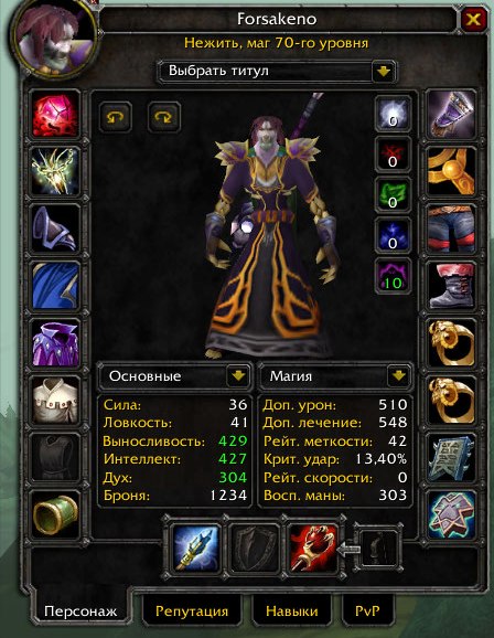 • Раса/Класс/Уровень персонажа:Андед/ маг/ 70