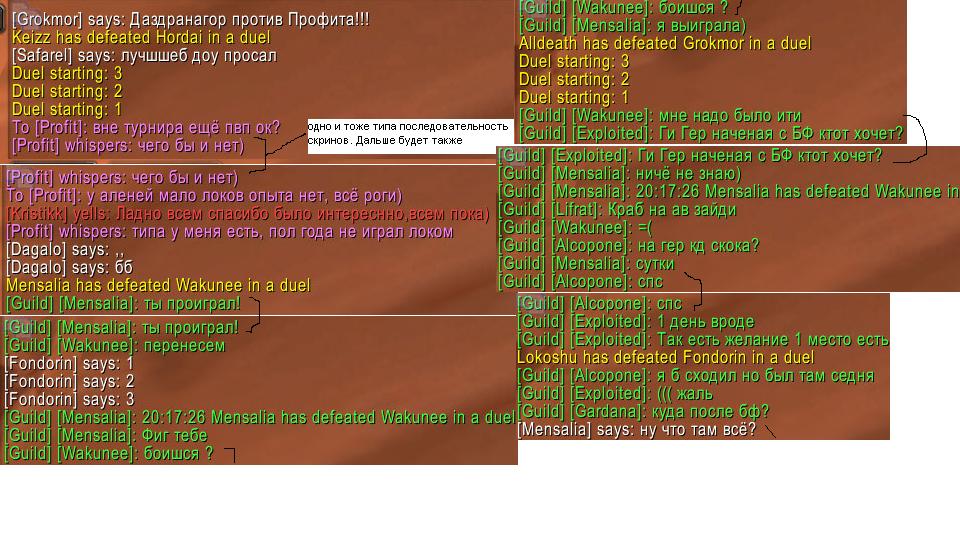 | Вова, после этого ты афкашил или что ты делал, я не знаю, тебя дважды вызвали, ты в гильд чат отвечал, а дуэли игнорировал. Мне тоже выложить?